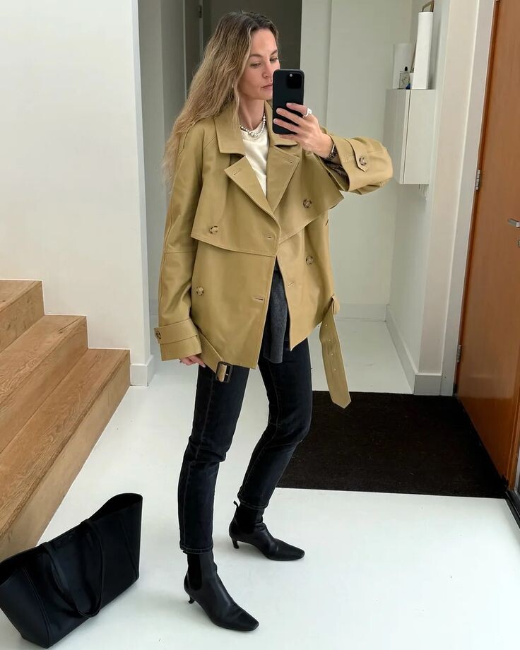 Ещё прошлой весной мы с вами наблюдали бесконечное цитирование 00-х. В этом году тренды качнулась в сторону 2010-х, и это их первое возрождение в истории моды. Работать с тем, что ещё совсем недавно было публично признано антитрендами, сложнее всего. Здесь легко оступиться и прослыть старомодной. Главное правило в стилизации трендов 2010-х — сочетать их с актуальными вещами из нашего десятилетия. Об этом мы расскажем ниже, а пока давайте смотреть, что из прошлого вернулось в модную повестку. Знаем, многие этого ждали — скинни объявляют свой модный камбэк. Как носим их в 2026-м? Сочетаем с объёмным верхом: рубашкой, длинным свитером или лонгсливом, пиджаком с мужского плеча. Верх при этом не обязательно должен быть огромным. Это может быть и приталенный силуэт, но с сохранением объёмов или выведенного плеча. Тотал облегания в образе лучше избегать. Кстати, наравне со скинни на модный пьедестал возвращаются и леггинсы, по словам модных таблоидов. Но, на наш взгляд, они никуда и не уходил