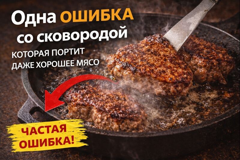 Можно даже не передержать. И всё равно получить жёсткий, сухой кусок. Причина часто одна — сковорода. Точнее, то, как вы её используете. Сковороду недогревают. Мясо кладут тогда, когда она: А должна быть по-настоящему горячей. Что происходит на недогретой сковороде: Итог — серое, сухое, безвкусное мясо. Даже из хорошего куска. Никаких термометров не нужно. Есть три простых признака: Если тишина — рано.