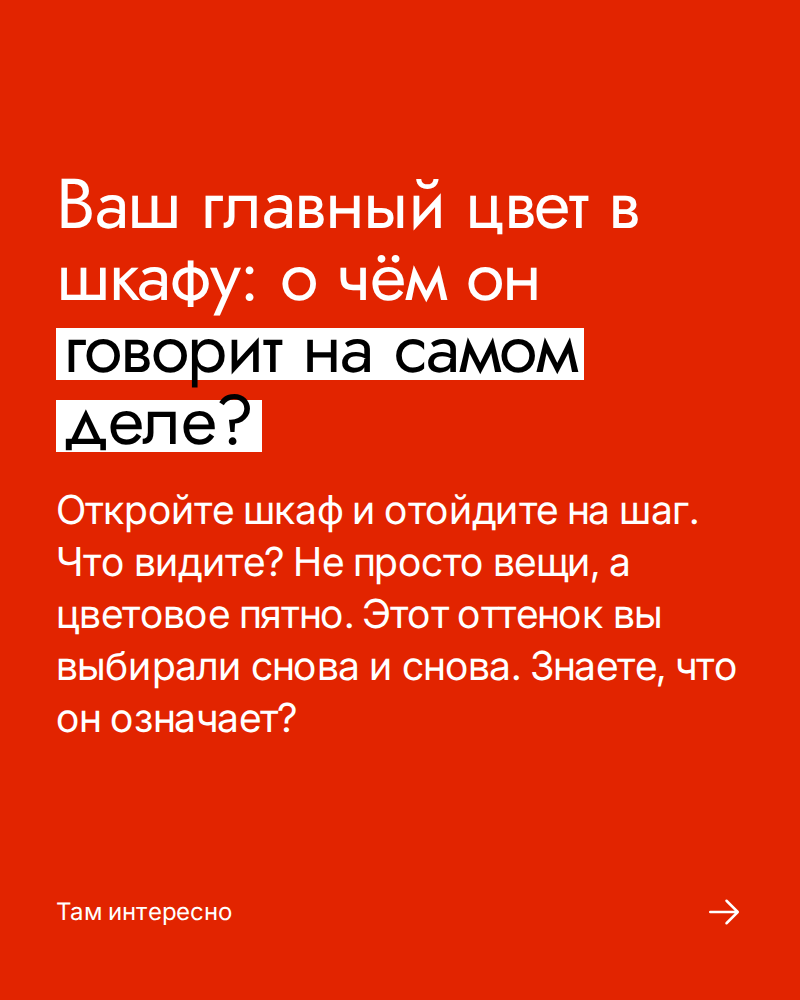 А ваш шкаф в каком настроении сегодня? Поделитесь главным цветом в комментариях — попробуем перевести его с «языка одежды» на человеческий.
