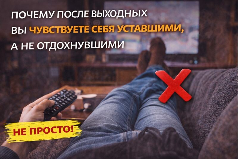 Многие ждут выходные как спасение. Кажется, что стоит просто дожить до субботы — и всё восстановится само собой. Сон, отсутствие работы, немного «ничего не делания». Но часто происходит обратное: в понедельник нет ощущения свежести, а усталость как будто стала глубже. Это сбивает с толку. Ведь объективно человек отдыхал. Не вставал по будильнику, меньше напрягался, позволял себе расслабиться. И всё равно тело и голова не чувствуют перезагрузки. Одна из главных причин — выходные редко отличаются от будней по сути, меняется только форма. Те же экраны, та же информационная нагрузка, тот же ритм, только без обязательств. Мозг не воспринимает это как отдых, потому что он продолжает обрабатывать стимулы без паузы. Есть ещё один момент, который почти не замечают. В выходные мы часто живём в режиме «наверстаю всё сразу». Поздно лечь, поздно встать, много впечатлений, резкая смена режима. Для нервной системы это не отдых, а стресс со знаком «плюс». Приятный, но всё равно стресс. Отдельную роль