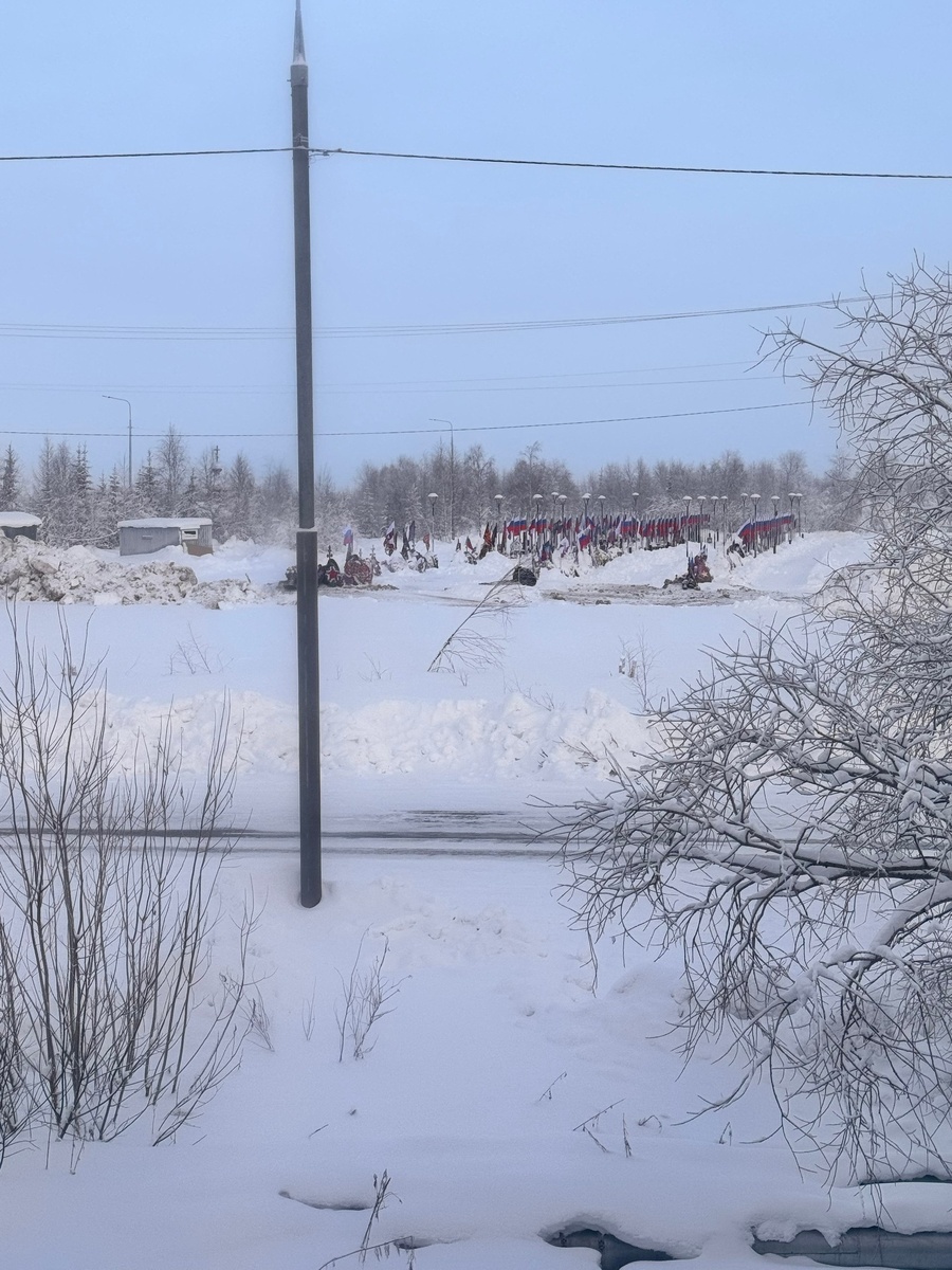 Уважаемая администрация города Салехард. Когда возведете обещанный забор высотой с деревья? Зачем их было вообще пилить? В другую сторону расширялись бы. Ребенок смотря на флаги говорит «День Победы». Прошу уже отреагировать на просьбу!
