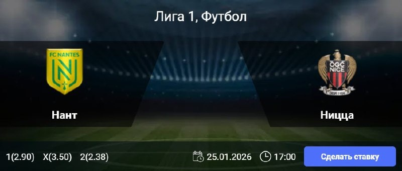 Статистика подтверждает ожидания обмена голами. «Нант» не смог отличиться лишь в одном из семи последних матчей Лиги 1, при этом пропуская в 10 из 11 предыдущих встреч. «Ницца», в свою очередь, имеет серию из 20 выездных игр в чемпионате с пропущенными мячами, но при этом забивала в семи из девяти последних гостевых поединков. История личных встреч также указывает на высокую вероятность голов с обеих сторон: в шести из восьми предыдущих матчей в рамках Лиги 1 команды обменивались забитыми мячами. 🎯 Обе забьют (Да) 🎲 кф (1.61) 👉 СДЕЛАТЬ СТАВКУ 🎁 ФРИБЕТ WINLINE - 3000₽ (промокод: BETWIN) 👉 СМОТРЕТЬ ПРОГНОЗ