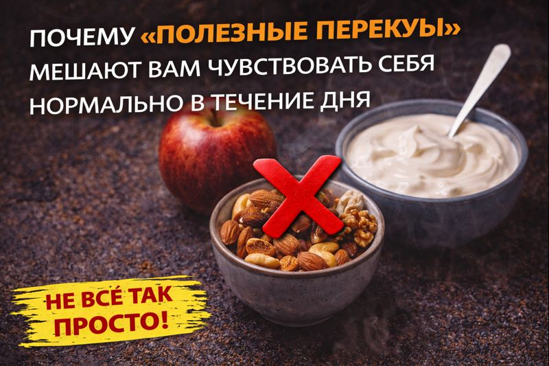 Многие искренне уверены, что перекусы — это забота о себе. Яблоко между делами, йогурт «без всего», горсть орехов на бегу. Кажется, что так и должно быть: часто, понемногу, полезно. Но именно после таких дней люди чаще всего жалуются на странную усталость, рассеянность и постоянное ощущение, что «чего-то хочется», хотя вроде бы они не голодны. Проблема не в самих продуктах. И даже не в количестве еды. Проблема в том, как эти перекусы встраиваются в день. Полезный перекус почти всегда выглядит одинаково. В нём мало жира, немного белка и довольно много быстрых углеводов. Он быстро переваривается, быстро даёт энергию и так же быстро её забирает обратно. В результате организм постоянно прыгает из состояния подъёма в состояние спада. Когда такие перекусы появляются каждые полтора–два часа, тело просто не успевает войти в стабильный режим. Уровень сахара то растёт, то падает, а мозг привыкает к постоянной стимуляции. Отсюда и ощущение, что без еды «не соображается», хотя реального голода мо