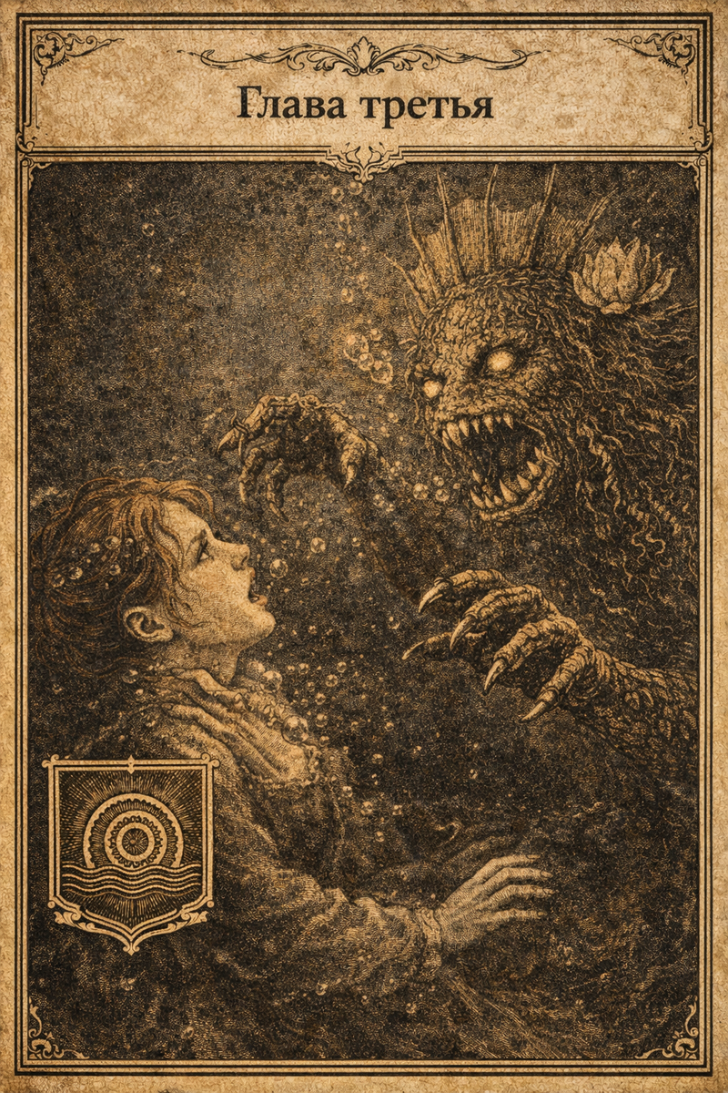 Воздуха не хватало. Его вообще не было. В нос, в рот, в глотку заливалась студеная вода. Все вокруг заполняла темная стихия. Легкие горели огнем. Елена силилась закричать, но издавала лишь придушенное бульканье. И из этой темноты выступало нечто огромное и страшное. Вот к ней протянулась рука с когтями вместо ногтей, сплошь покрытая чешуей. За ней потянулась вторая. Следом сверкнули глаза на уродливом лице. Тело водяного было неестественно длинным, словно туловище щуки, верхом на которой он восседал. Голову венчала корона из плавников, увитая ряской и водорослями. За левым ухом, тонким и длинным, кокетливо торчала кувшинка. Сквозь прозрачную кожу на животе, поблёскивающую в лунном свете, пробивавшемся сквозь толщу воды, плескалась болотная жижа. А рот твари был огромным, лягушачьим и полностью заполненным острыми, словно ножи, зубами. Водяной раскрывал и закрывал рот, поглощая мелкую рыбёшку. Зубы лязгали друг о друга. Чудовище все ближе подплывала к Елене. «Лязг-лязг-лязг», - почти у самого лица смыкались зубы-ножи.