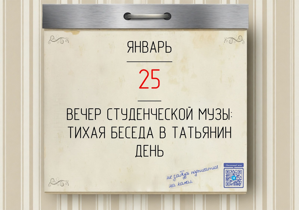 В завершение насыщенного Татьяниного дня, когда стихли праздничные гулянья, хорошо обратиться к мыслям и тихой молитве — той, с которой столетия назад начинался путь русского студенчества. «Святая мученице Татиано, невесто Сладчайшего Жениха Твоего Христа! К тебе, яко скорой помощнице и молитвеннице о душах наших, прибегаем мы ныне. Ты, во дни земныя жизни твоея, светом веры и добрых дел озаряла еси путь ко спасению многим. Моли Владыку Христа, да подаст нам, учащим и учащимся, дух премудрости и разума, дух совета и крепости, дух ведения и благочестия. Да утвердит нас в вере и добродетели, да сохранит от всякаго зла и наставит на путь истинный. Помози нам достойно нести звание христианское и студенческое, во славу Божию и на пользу Отечества. Аминь». Пусть этот вечер принесёт вам мир, светлую радость и вдохновение для новых свершений. С праздником! Доброй ночи. #ВечерняяМолитва #ПокровительницаСтудентов Подписаться https://t.me/+NbMdPCbn1F40Y2Ni
