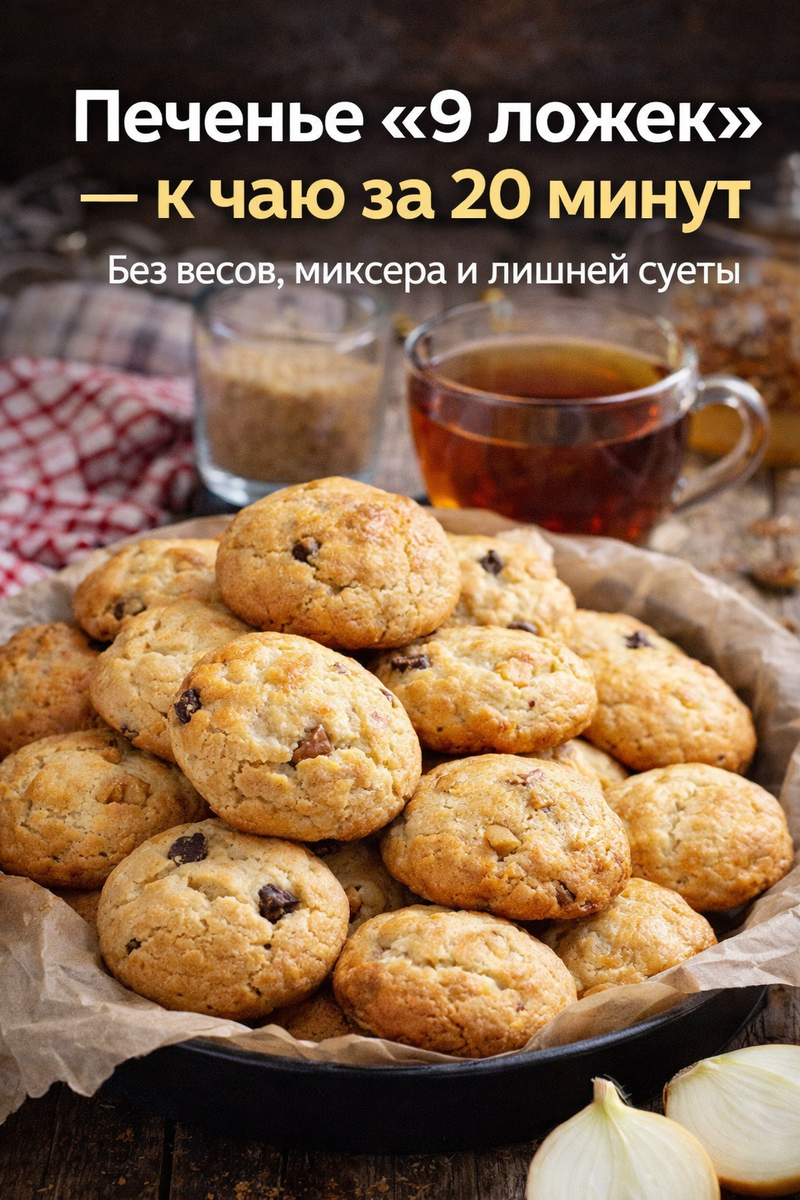 Когда хочется домашней выпечки, но нет ни времени, ни желания возиться с тестом, выручает именно такой формат: всё измеряется ложками, ингредиенты самые простые, а результат — мягкое, ароматное печенье, которое исчезает быстрее, чем остывает.