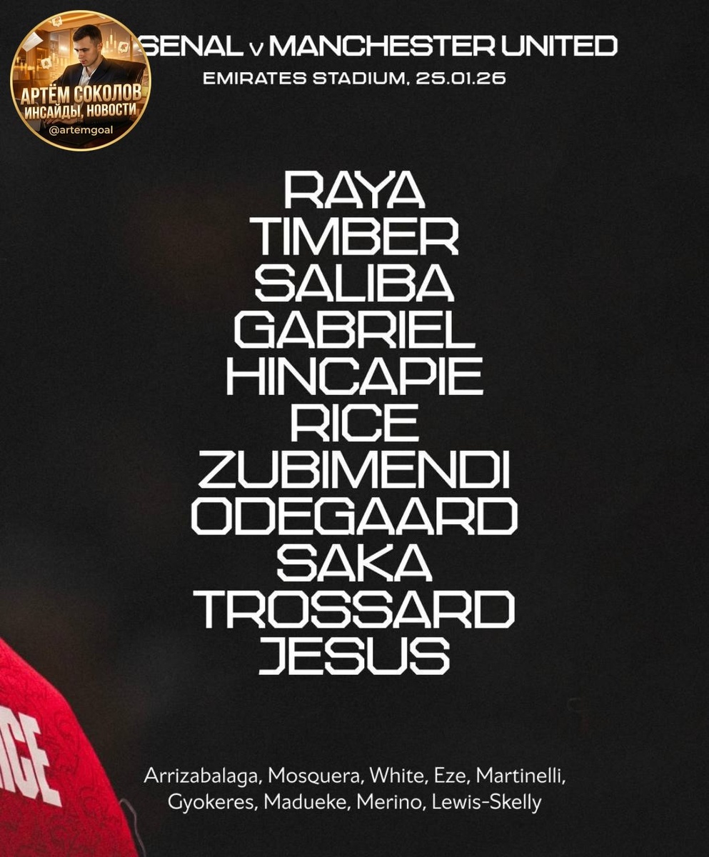 ⚽️х⚽️ Стартовые составы на матч «Арсенала» и «МЮ»