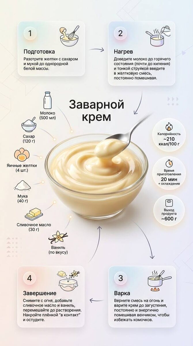! Белковый, сливочно-сырный, сметанный, «Шарлотт» и заварной крем. На фото — точные пропорции и технология. Забирайте в избранное, чтобы рецепты всегда были под рукой 🤍📱