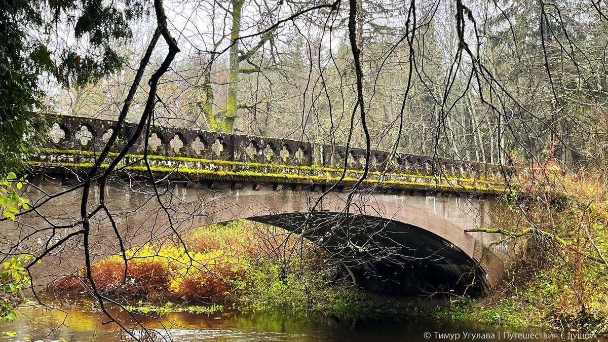 Следующая остановка — Олений мост, построенный в 1905 году. Арочный, покрытый толстым слоем ярко-зелёного мха, с ажурной решёткой.