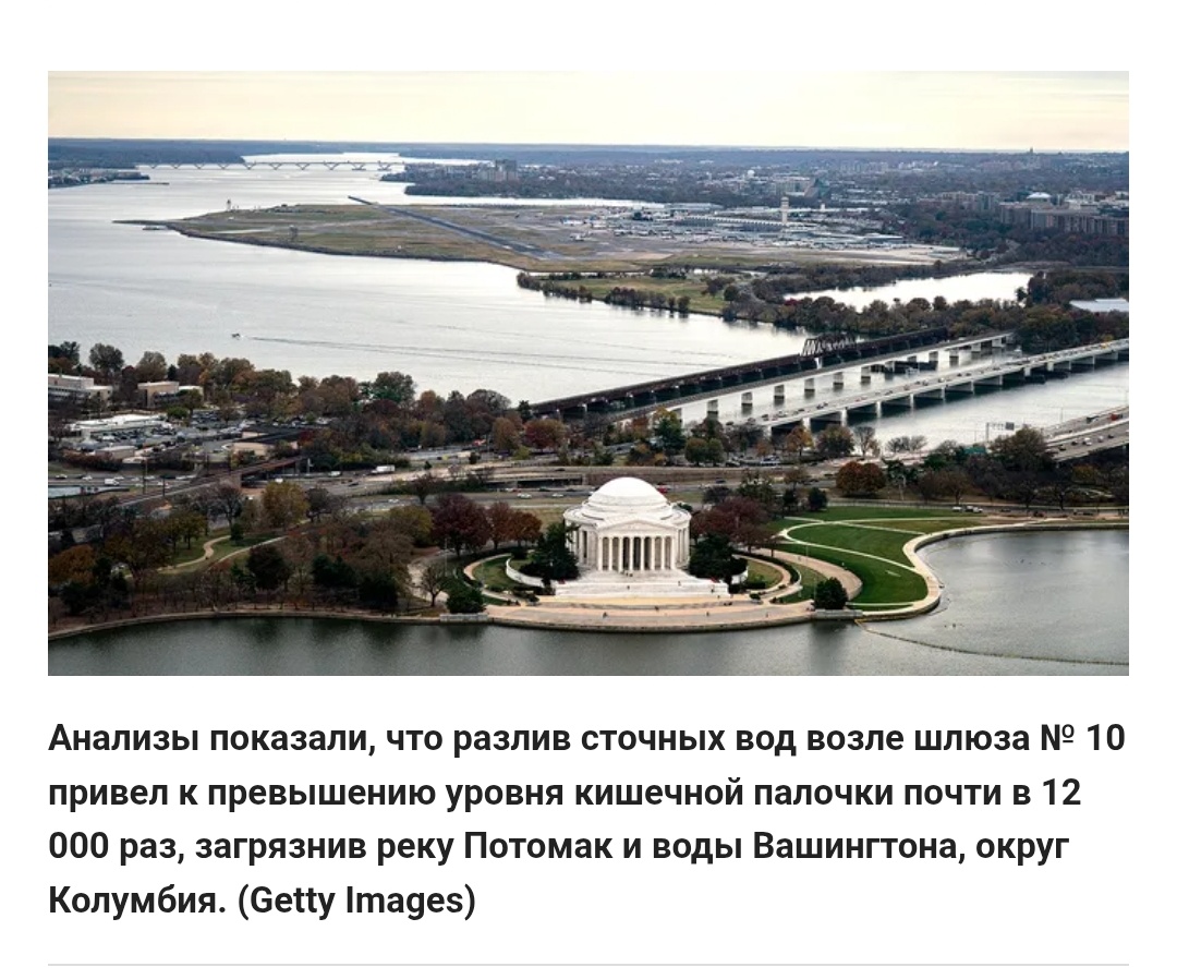 Тихий исторический уголок в восьми километрах от Белого дома стал эпицентром одного из крупнейших в истории США разливов канализационных стоков. Река Потомак, протекающая через сердце американской столицы, превратилась в токсичный поток, несущий прямую угрозу пищеварению людей.