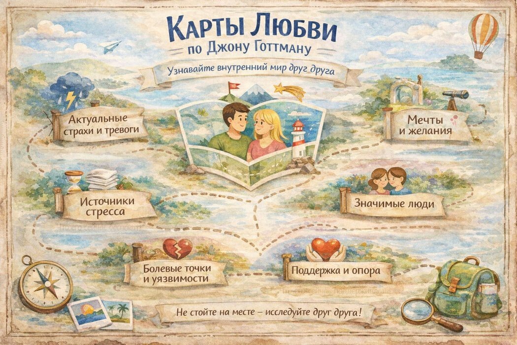 Джон Готтман знаменитый исследователь семейных отношений, нашел одно хорошее рабочее средство, как можно поддерживать отношения. И назвал он это "Карты любви"