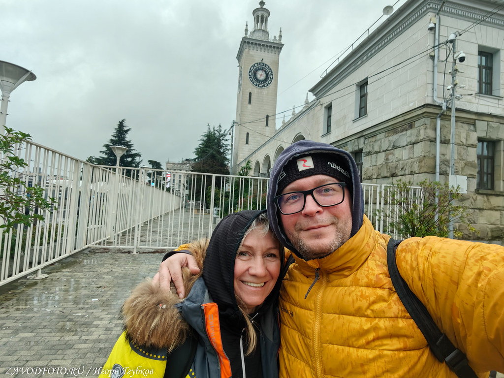 Возвращались мы домой из нашего насыщенного путешествия через Сочи. В этот раз город встретил нас дождём, видимо, грустил, что каникулы заканчиваются. Приехали мы утром, а самолет поздно вечером. В такую погоду долго не погуляешь, а хочется насладиться морем, подышать морским воздухом. И туууут.... сюрприз от мужа. Но на то он и сюрприз, что о нем даже не догадываешься. И мы от вокзала пошли гулять под дождем по городу Сочи. Снег, выпавший накануне Нового года, расстаял, поломанные деревья убраны Улица Навагинская в Сочи - главная пешеходная улица города-курорта. Она начинается у Курортного проспекта, в районе морского порта, и завершается у железнодорожного вокзала Сочи. Навагинская улица с кипарисовой и пальмовой аллеями, уютными зелеными зонами отдыха с клумбами была превращена в пешеходную и облагорожена совсем недавно - к Олимпийским играм 2014 года. До этого, по улице ходил транспорт. Протяженность Навагинской улицы - 1,2 км. И вот мы дошли до пляжа «Маяк». Это один из самых попу