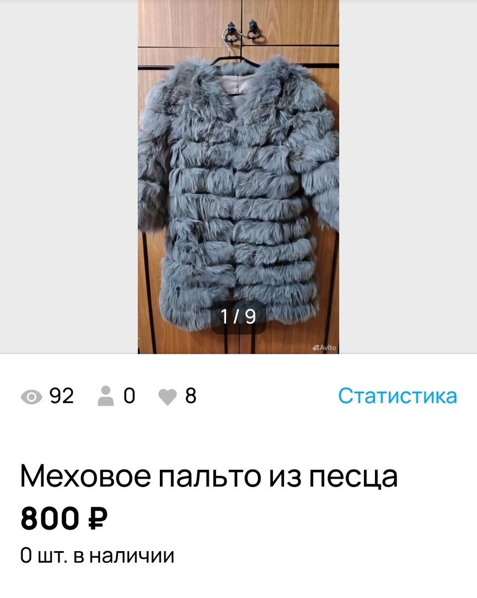 Пальто попросили куда-нибудь пристроить, я пристроила на Авито. На очень теплую зиму. Фасон трансформер, низ и рукава отстёгиваются. Сшито из полосок меха, настроченных на основу, качество на троечку. Выставила как вещь для переделки или рукоделия. Заказали в Волгоград. С покупателем переписки не было, поэтому цели покупки я не знаю. Знаю