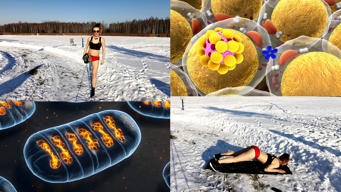 - Активация бурого жира: холод — главный стимулятор бурой жировой ткани. В отличие от белого жира, бурый жир богат митохондриями и работает как биологическая «печь», сжигая калории для обогрева.