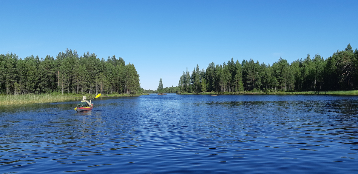 На утро мы с Ирой отправились вдвоём исследовать западную часть Мурамозера. Попутно ловя рыбу и купаясь, жара!