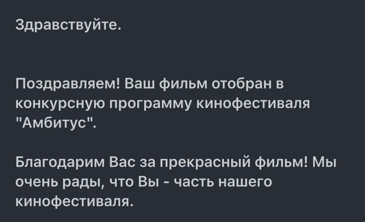 «Случайный разговор» взяли в конкурсную программу еще одного кинофестиваля. И он международный. Я рада.