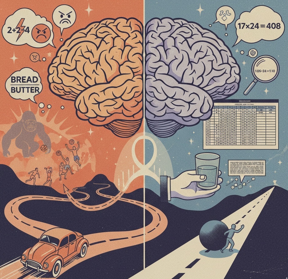 Канеман предлагает представить наше мышление как драму с двумя действующими лицами: Системой 1 и Системой 2. Конечно, это полезная метафора, а не два реальных агента в нашей голове. Но она невероятно точно описывает внутренний конфликт между автоматической интуицией и осознанным размышлением.