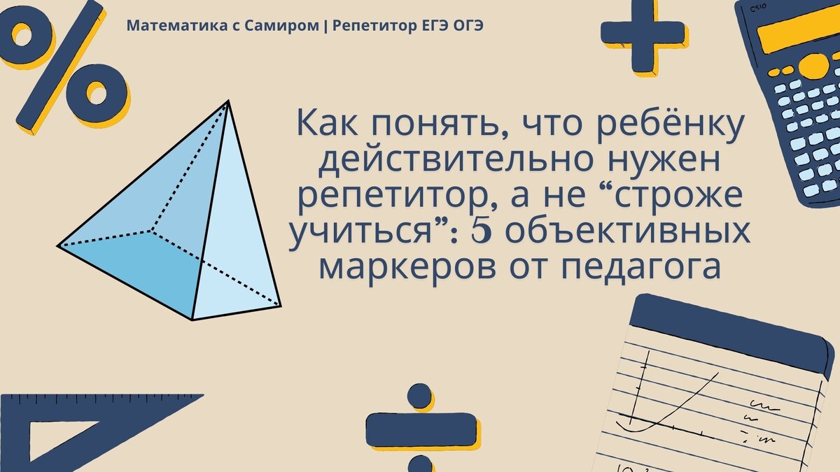 «Садись и учись!», «Просто будь внимательнее на уроках», «Надо стараться больше» — знакомые фразы? Когда у ребёнка начинаются проблемы с математикой, первая реакция многих родителей — призвать к дисциплине и усидчивости. Но что, если дело не в лени и не в недостатке стараний? Как репетитор, я каждый день вижу детей, которых долго и безрезультатно «закручивали» дома, пока ситуация не стала критической. Разберёмся, как отличить проблему мотивации от проблемы понимания, которая требует профессиональной помощи.