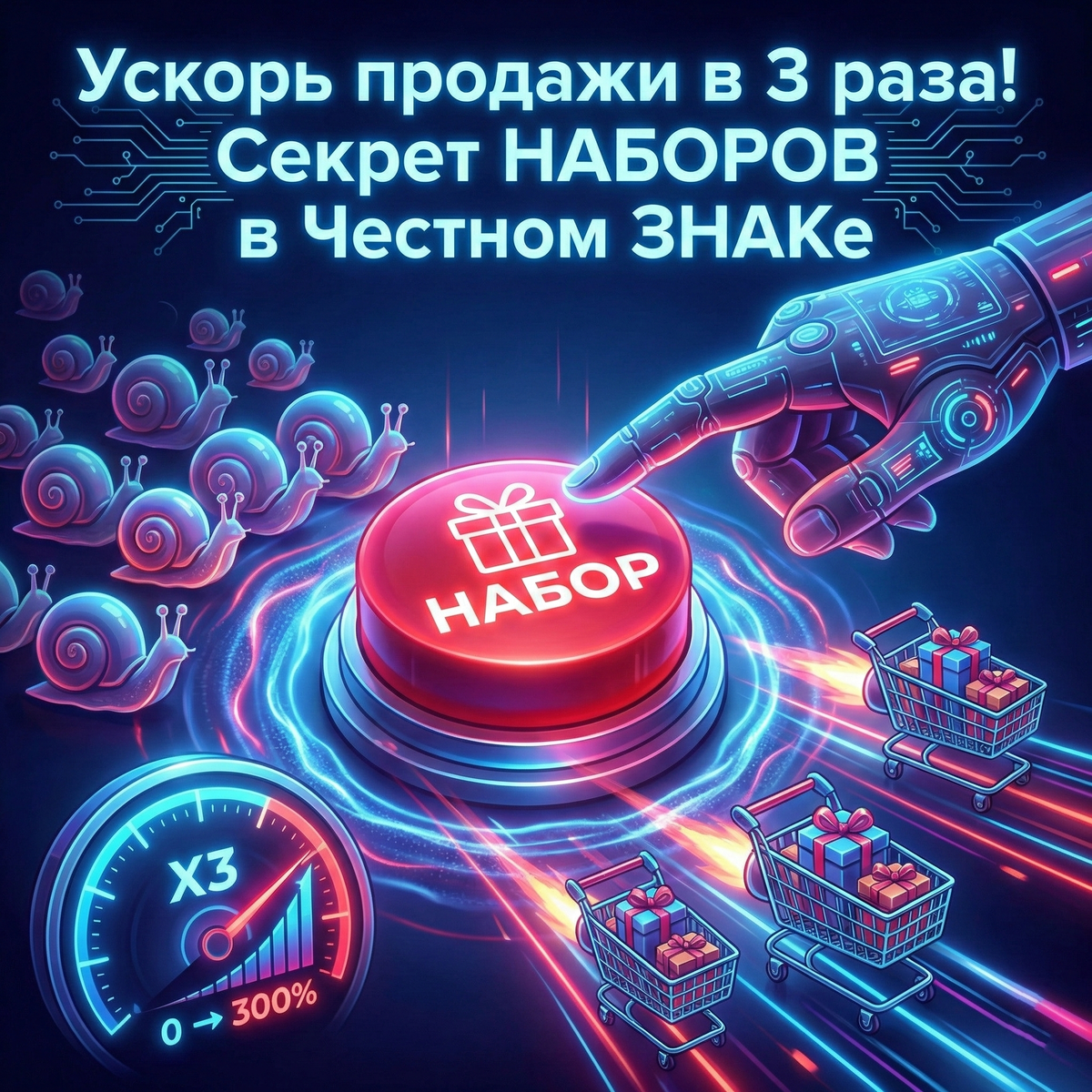 Магия? Нет, маркетинг. Но тут просыпается «Честный ЗНАК» и спрашивает: «А как ты это продавать будешь, друг? Пикать каждую банку внутри коробки, пока очередь на кассе тебя проклинает?». Спойлер: нет. Нужно делать Набор. Сегодня расскажу, как объединить товары в один код, не сойти с ума и не перепутать «Набор» с «Комплектом» (да, это разные вещи).