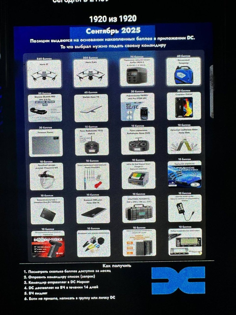 Есть такая программка DC, где операторы фпв выкладывают результат своей работы, а за это начисляют баллы. У кажкого оператора свой "кошелек". На эти баллы бойцы могут на купить себе необходимое оборудование, которое, по идеи должно было выдаться МО РФ. Купить можно вме от отвертки до пикапа или буханки. Так же благодаря баллам операторы должны были награждаться( слухи ходили, что за 400 баллов можно получить орден Мужества) Идея очень хорошая и очень полезная: мотивация операторов возрасла до максимума Но! Это опять же идея, а реализация как всегда... Наколотили наши операторы более 1000 баллов, и не один расчет и не два, а многие расчеты. И тут пошла фантазия бойцов: и старлинки купим, генераторы, пикапы и оборудку для работы и все все все. Но недолго музыка играла... Программа виснит и.... все обнуляется!!! 0 баллов у всех! И для чего это все делалось, для чего ежедневно с криками "загружайте срочно видео работ в программу!" выходили на бойцов, для чего они часами пытались вбить все
