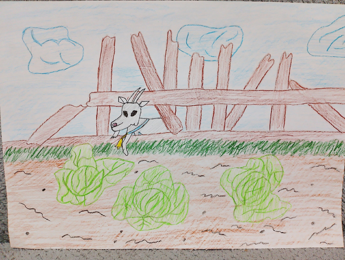 Побежала коза в огород.