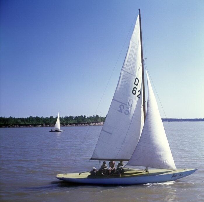 На, фотографии 1969 года запечатлены яхты, идущие вдоль западного берега острова Тань Вань. Обратите внимание каким высоким был берег острова в то время. Фото: Блохин С.