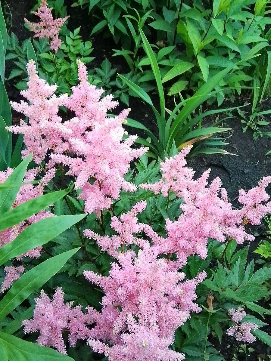 Все эти астильбы росли в 23 году в большом цветнике, совершенно не подобранные по высоте, одна закрывала другую, поливала я их через день, иначе сразу листья становились, как тряпочки.