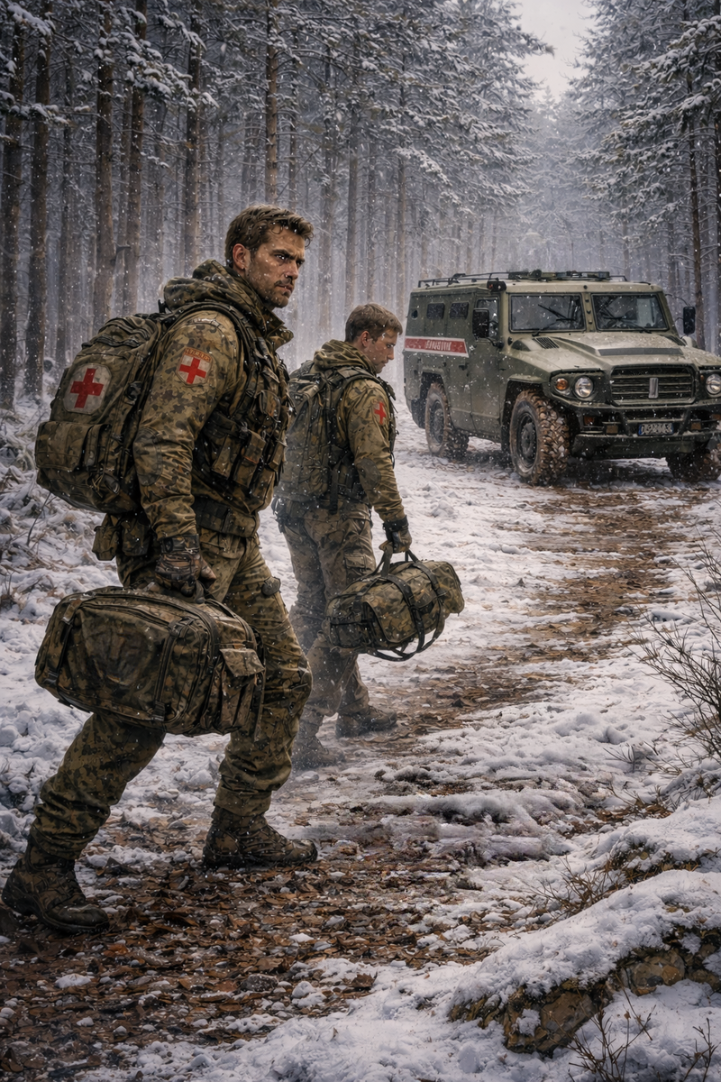 Дорога до Синей Пристани превратилась в настоящий кошмар, растянутый в пространстве и времени. Это был уже не асфальт, а изуродованная, развороченная грунтовка, изрытая глубокими воронками от снарядов и колеями от гусениц тяжёлой техники. К тому же всё было густо засыпано снегом, который валился на землю с тяжёлого неба огромными хлопьями. «Тигр» то и дело проваливался в ямы, подпрыгивал на кочках и опасно кренился, заставляя медиков цепляться за поручни. Каждый удар колеса о рытвину отдавался в теле Дениса тупой, навязчивой болью в висках, сливаясь с тяжёлым, гулким стуком собственного сердца. Он смотрел в бронированное стекло и думал о том, что когда-нибудь и, возможно, очень даже скоро все это закончится, и он, наконец, сможет вернуться в Саратов к семье, желательно к тому моменту, когда его жена Катя подарит ему второго ребёнка.