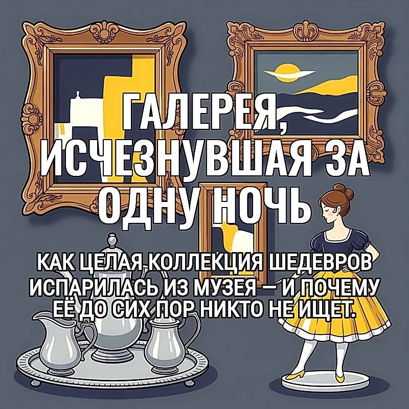 исчезла. Более сорока полотен — включая работы Матисса и Боннара — будто растворились. 🚪 Следов взлома не было, сигнализация молчала, а охранники клялись, что всю ночь патрулировали залы. Позже выяснилось: архив с документами о покупке картин тоже пропал. 📚 Через годы один из экспонатов всплыл на берегу в Швеции — без рамы, но с инвентарным номером музея. Остальные — бесследно. Некоторые искусствоведы считают, что коллекцию вывезли сами хранители, чтобы скрыть незаконное происхождение работ из довоенных трофеев. 🎭 До сих пор официально это дело числится как «внутреннее исчезновение».