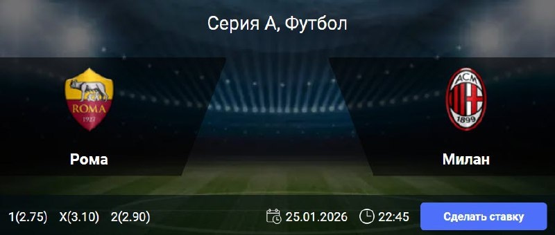 Статистика Ромы: «Рома» выиграла шесть последних домашних матчей в Серии А. В 8 из 10 предыдущих игр клуба в чемпионате как минимум одна из команд не забивала. В 8 из 10 последних домашних встреч римлян в Серии А было забито не более двух мячей. Статистика Милана: «Милан» не проигрывал в десяти последних выездных матчах Серии А (6 побед, 4 ничьи). В 5 из 7 предыдущих гостевых игр в чемпионате миланцы пропускали не более одного гола. В 5 из 7 последних выездных матчей клуба в Серии А забивали обе команды. 🎯 Обе забьют (Да) 🎲 кф (1.84) 👉 СДЕЛАТЬ СТАВКУ 🎁 ФРИБЕТ WINLINE - 3000₽ (промокод: BETWIN) 👉 СМОТРЕТЬ ПРОГНОЗ