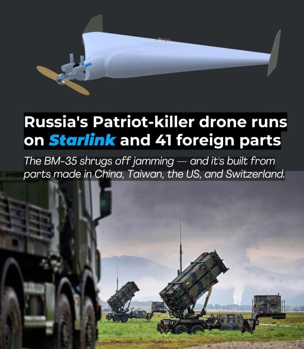 Внезапно (нет) выяснилось, что в дронах БМ-35, которые считаются устойчивыми к РЭБ за счёт использования терминалов Starlink, обнаружено не менее 40 компонентов иностранного производства. Детали поставляются из Китая, Тайваня, США и Швейцарии. Разумеется, речь не идёт о том, что кто-то целенаправленно делает эти комплектующие для российских дронов. Это стандартизированная электроника и элементы для авиационной техники, доступные на глобальном рынке. Их просто закупают и интегрируют в изделия — как это делается во всём мире. Но сторонников мантры про «у русских чипы из микроволновок» это, естественно, не останавливает. Проблема здесь не в происхождении деталей, а в другом: в условиях санкций и формального технологического давления РФ по-прежнему способна выстраивать устойчивые цепочки поставок, собирать сложные системы и масштабировать производство. И именно это триггерит тех, кто никак не может понять откуда и как в РФ развивается производство дронов. 🌐 За Русский Мир©Резервный📣Н