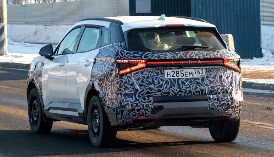 Новый кроссовер «Лада Азимут» вновь заметили во время испытаний на дорогах Тольятти. На этот раз в объектив фотографа попала машина в базовой комплектации. Фотографии прототипа «Лады Азимут», частично оклеенной маскировочной плёнкой, опубликовал пользователь сайта Platesmania. Кроссовер и ранее замечали в Тольятти во время испытаний, но на этот раз в объектив фотографа попал автомобиль в базовой комплектации — именно его можно увидеть на заглавной фотографии. У такого «Азимута» простые штампованные диски вместо легкосплавных, нет панорамной крыши и двухцветной окраски кузова, а накладка на задней стойке выполнена из чёрного некрашеного пластика. Ранее на выставках и мероприятиях показывали только кроссоверы с максимальным оснащением. Кроссовер «Лада Азимут» разработан на модернизированной платформе «Весты», поэтому полного привода у кроссовера не будет — только передний. Внешний облик модели выполнен в новом стиле, благодаря чему машина выглядит вполне современно и не похожа на другие