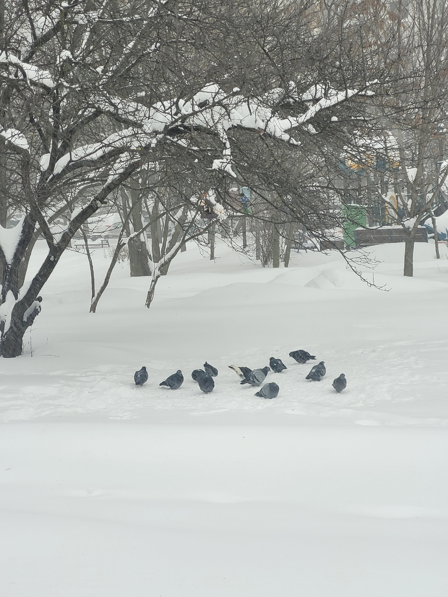 Набрала очередную порцию снега и приготовилась к броску за тратуар. Голову подняла, стоит женшина моих лет и ждёт когда я брошу снег.
