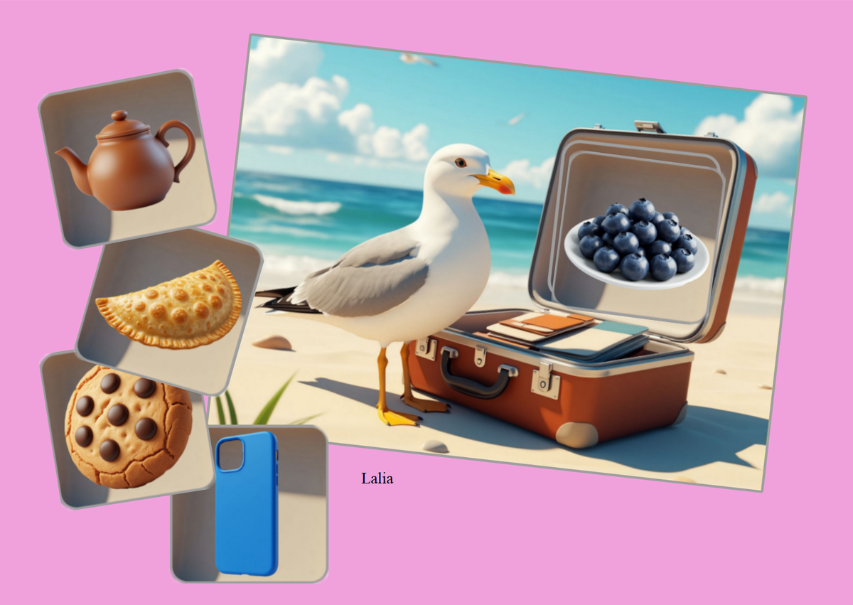 Удочка, ключ, очки, булочка, аптечка, колечко