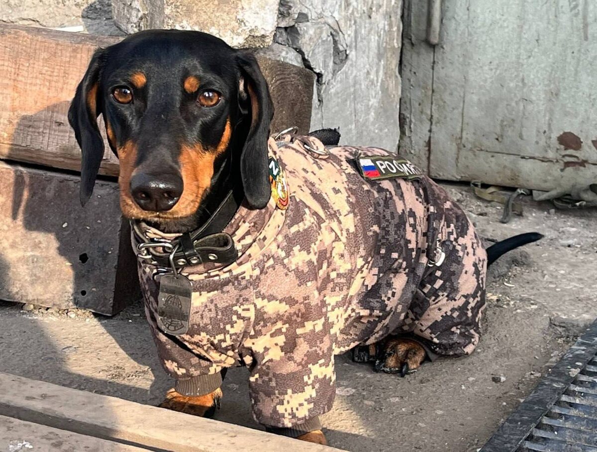 Знакомьтесь, это «Бакс». Со своим хозяином он служит в бригаде «Невский» Добровольческого корпуса. Еще маленьким щенком «Бакса» подобрал боец автороты с позывным «Бой», с ним такса проехала десятки километров фронтовых дорог. Сегодня «Бакс» не просто друг, но и опытный доброволец подразделения 💪🏻 #добровольцы #дк #невский #бригаданевский #четвероногиегерои #меньшиедрузья