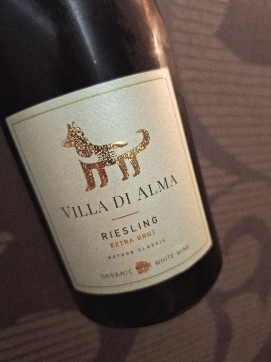 Перед Новым годом я писал пост о российских игристых и там среди рекомендаций была именно эта бутылка. Так давайте посмотрим на нее повнимательнее, поскольку это новое имя в российских игристых, которое весьма громко прозвучало с самого начала работы винодельни. Вилла ди Альма расположена в Крыму на берегу реки Альма. У них 100 гектаров, которое освоены далеко еще не полностью. Проект существует всего 10 лет, всего потому что когда все начинается с винограда и его посадки все развивается очень медленно. Основные посадки были в 2019, а сама винодельня заработала только в 2022 году. И это первое хозяйство в России, которое получило статус органического виноградника. И что же нас ждет в бутылке? Отличный выдержанный экстра брют. Прекрасное легкое почти летящее игристое, очень изящное, просто невероятно изысканное! Прекрасная кислотность, прямо на границе слов кислотность и свежесть. Но не сваливается в ощущение избыточной кислоты. Прекрасные цитрусовые ноты во вкусе и длительное приятное