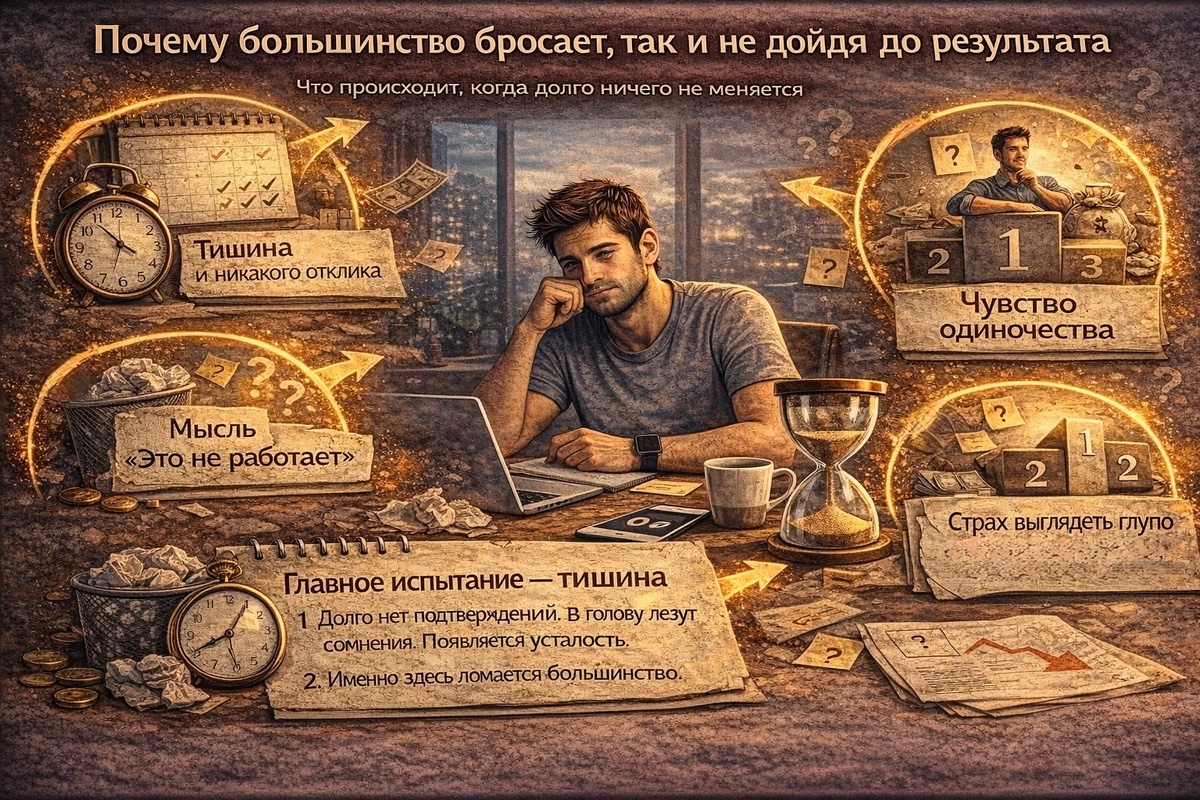 Большинство бросает не потому, что не получилось, а потому что слишком долго ничего не происходит.