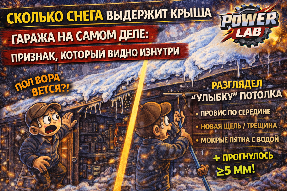 Сейчас разложу по-человечески: сколько снега выдержит крыша гаража “на самом деле” и какой признак видно изнутри раньше всех.