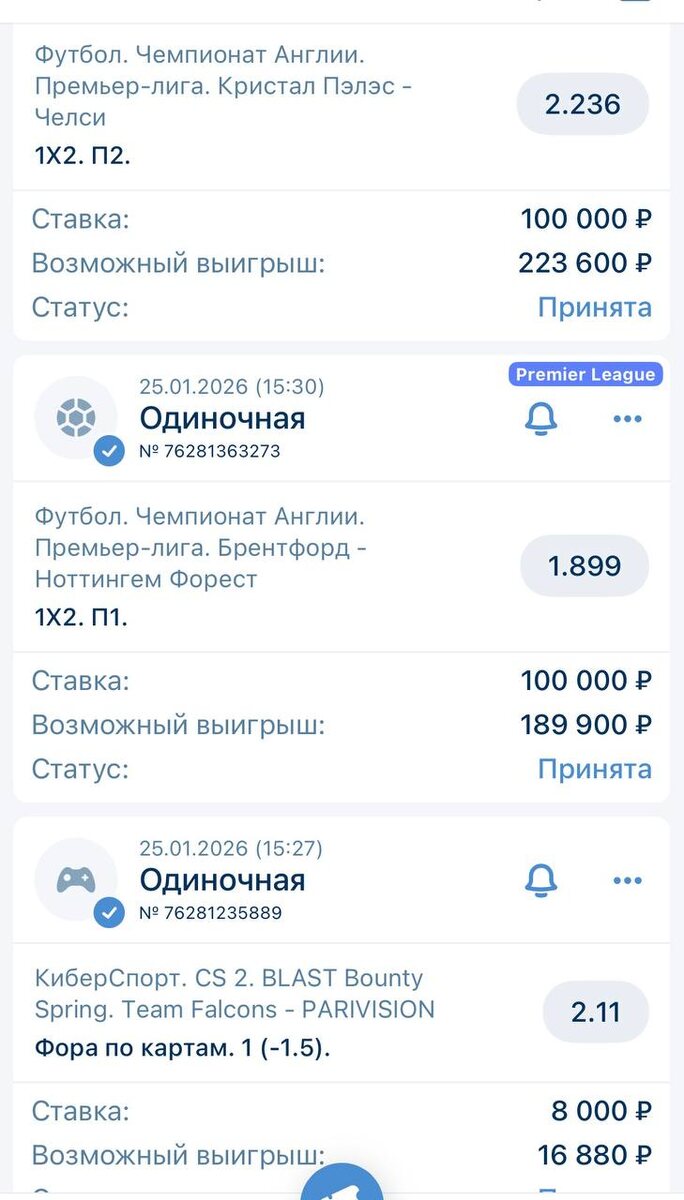 18 +. Не является ИИР. Рубрика #ЛудкасБородой Футбол. Брентфорд - Ноттингем. Брентфорд дома выносит всех. 7 побед, 1 слив, 3 ничьки. Ноттингем в гостях такой себе + уставшие после еврокубка. П1 за 1,89 кф. Кристал - Челси. Челси традиционно выносит Кристал, там 14 побед в личках, но 3 последнии игры ничка была. Челси сейчас вроде начал побеждать. Должен и сегодня. П2 за 2,2 кф. Ньюкасл - Астон Вилла. Победителя тут брать не буду. Прошлая личка между ними неожиданно была 0-0, но 7 игр до этого пробивали ТБ 2,5, его и возьмем. ТБ 2,5 за 1,7 кф. Арсенал - МЮ. Арсенал дома не должен даже ничьей допускать. Арсенал Фора -1 за 1,96 кф. Барселона - Реал Овьедо. Реал Мадрид своей победой вчера вышел на первое место в чемпионате, и чтобы Барселоне вернуться обратно - нужно побеждать сегодня. Индивид. тотал Барселоны 3Б за 1,73 кф. КХЛ. Спартак - Локо. Где играет Локо, там в 80% случаев тотал меньше по голам. ТМ 5,5 за 1,7 кф. CS-2. Финал. Falcons - Parivision. Нико в прайме, Монеси то