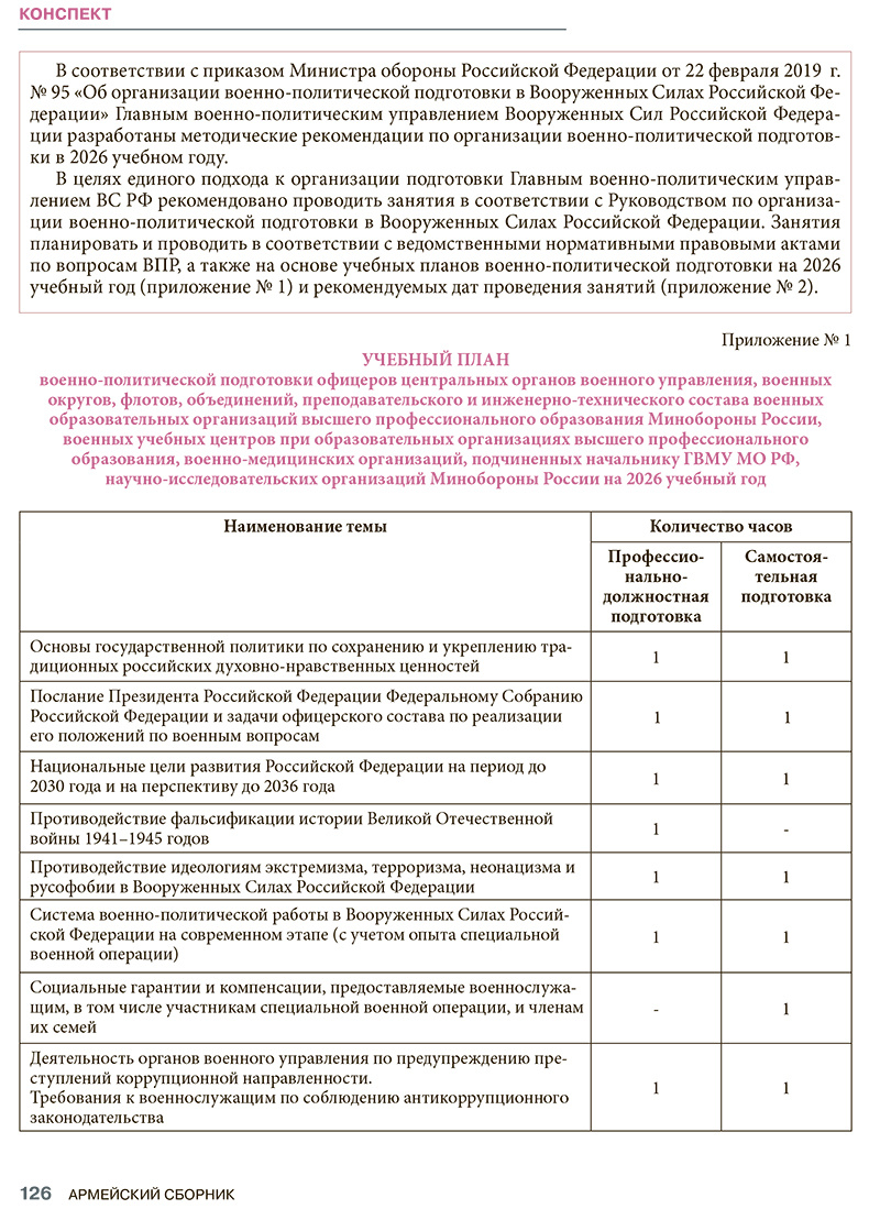 № 95 «Об организации военно-политической подготовки в Вооруженных Силах Российской Федерации» Главным военно-политическим управлением Вооруженных Сил Российской Федерации разработаны методические рекомендации по организации военно-политической подготовки в 2026 учебном году.