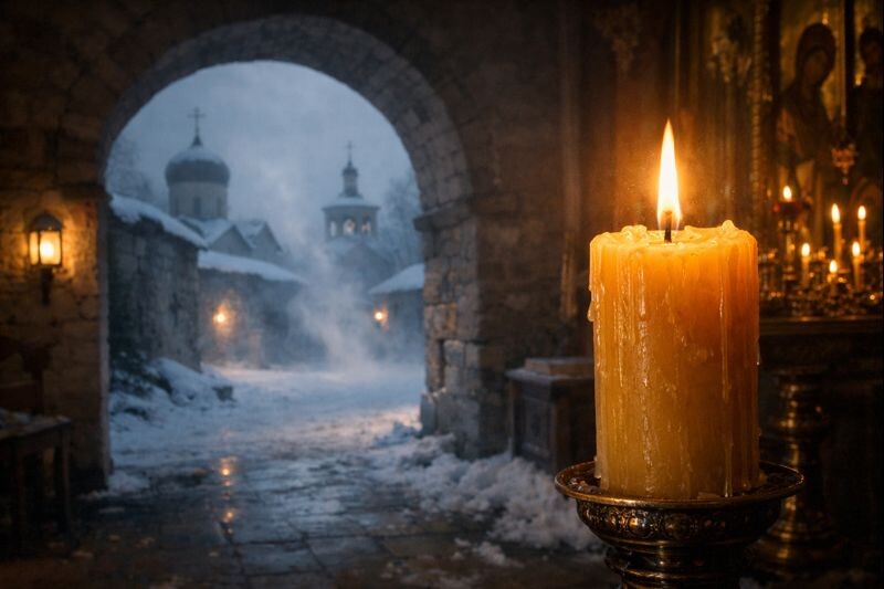 Вставал затемно, ещё до первых петухов, и расчищал дорожки от снега — без красивых мыслей, просто потому, что так надо. В трапезной носил котлы осторожно, чтобы не расплескать ни капли — как будто это не суп, а чья‑то надежда. В свечной мастерской терпел запах горячего воска, который прилипает к волосам и одежде и потом ещё долго держится на ладонях.