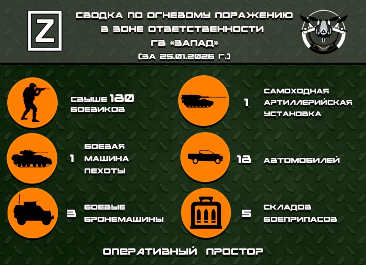 Сводка по огневому поражению в зоне ответственности ГВ «Запад» за 25.01.2026 г