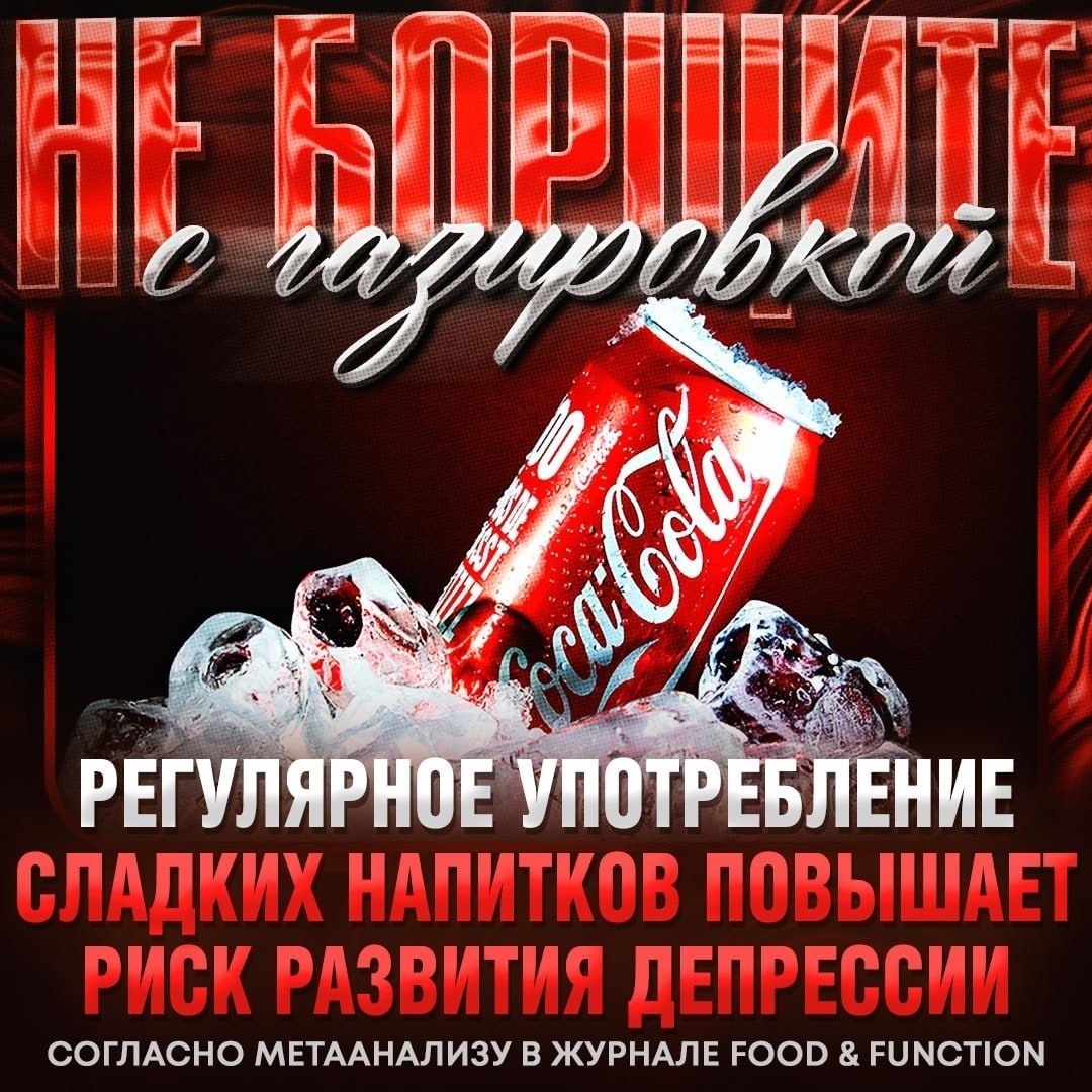 ❌ КОКА-КОЛА БЬЕТ ПО ПСИХИКЕ — у тех, кто пьёт много сладкой газировки, риск депрессивных симптомов на 39% выше! Опасность для менталки учёные объясняют так: 🔴Сахар из напитка вызывает мгновенный выброс инсулина и энергии; 🔴Через несколько часов уровень сахара резко снижается, что приводит к упадку сил, сонливости и тяге к новой порции сладкого; 🔴Постоянные «сахарные качели» перегружают гормональную систему, повышают уровень кортизола и могут способствовать развитию тревожности и депрессии Риск растёт уже от регулярного употребления. При этом диетические версии на искусственных подсластителях НЕ ЯВЛЯЮТСЯ безопасной альтернативой 🤬 👉 Подписаться на канал