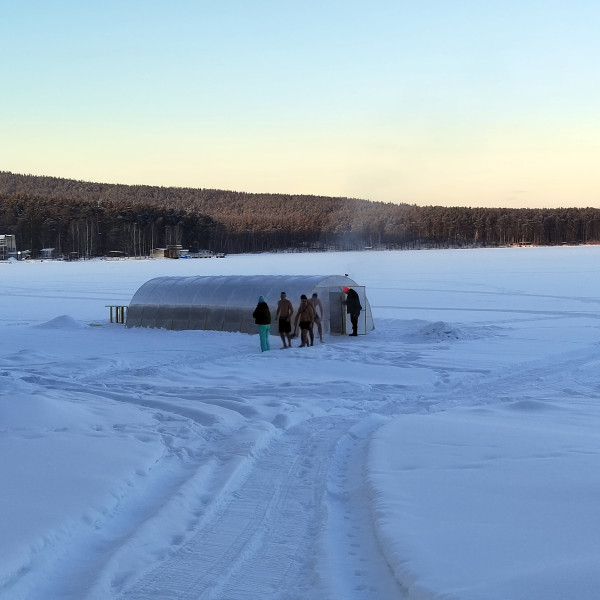 На полпути встретилась работающая баня и компания или закалённых, или "безбашенных" товарищей, или оба варианта сразу. Смотреть на них ск