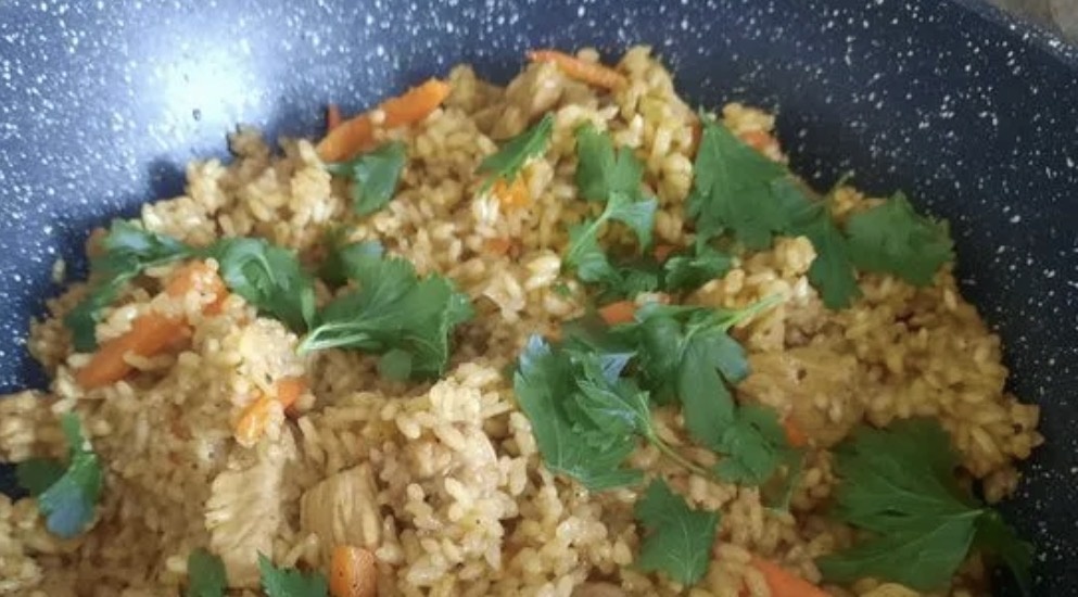 - Выключить плиту, завернуть казан в тёплое одеяло, дать плову упариться.