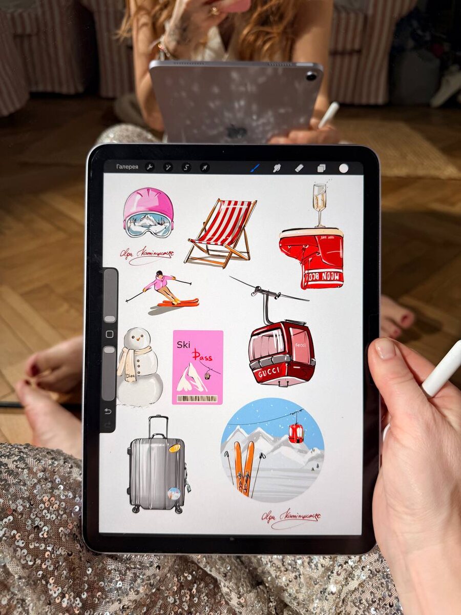 Вот такой стильный стикерпак я сделала на горнолыжную тему❤️🥹 уже отправила в распечатку, но до отъезда не успела получить