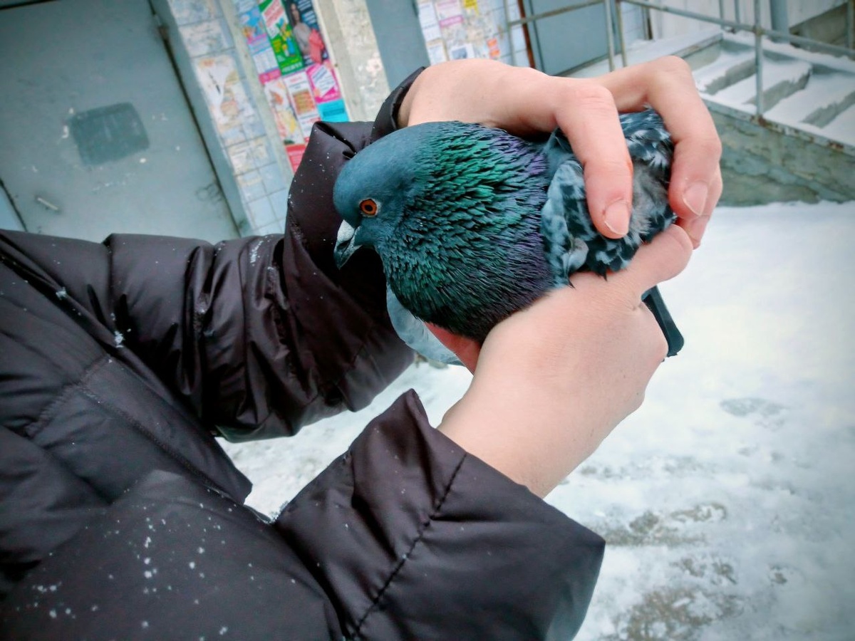 Голубь запутался в проводах в Екатеринбурге — на улице стоял лютый мороз