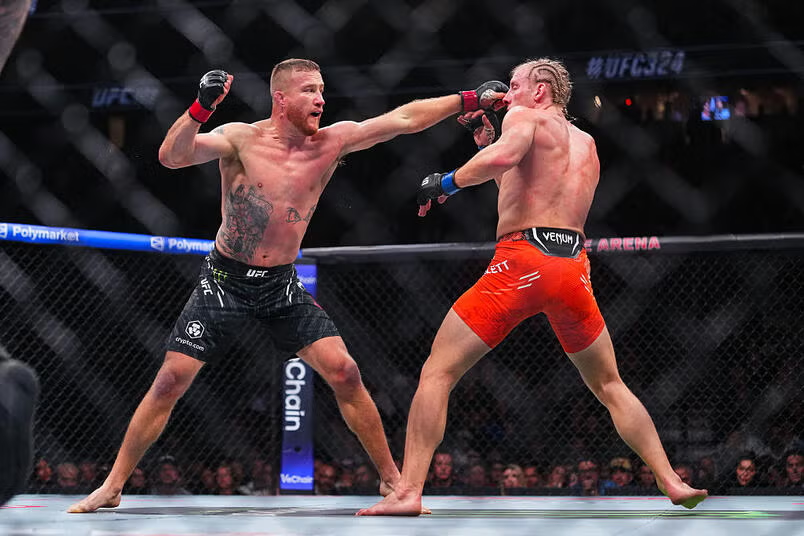 Джастин Гэтжи одолел единогласным решением судей Пэдди Пимблетта и вновь стал временным чемпионом UFC. Пимблетт же потерпел первое поражение в промоушене. В этом поединке, Джастин решил вновь пренебречь обороной и отказался от тактики "умного бокса", в пользу рубки. И эта тактика сработала. Удивило, конечно, что Пимблетт даже не пытался бороться и большую часть бой прошёл в стойке. Уже в первом раунде Пэдди оказался в нокдауне. В этом же раунде Гэтжи при своей атаке отметился тычком в глаза и получил жёсткое предупреждение от рефери. Второй раунд Джастин провёл ещё лучше, снова отправив оппонента в нокдаун, и казалось, что конец близок, но Пимблетт сумел продержаться до конца гонга. В третьем раунде уже Пимблетт стал чаще попадать и в этом раунде уже Пэдди нарушил правила попав оппоненту ниже пояса, но не получил за это предупреждение. В четвёртом раунде Гэтжи вновь добавил в активности, дважды отправив оппонента в нокдаун, но Пимблетт продолжал держаться. В пятом раунде видна была у