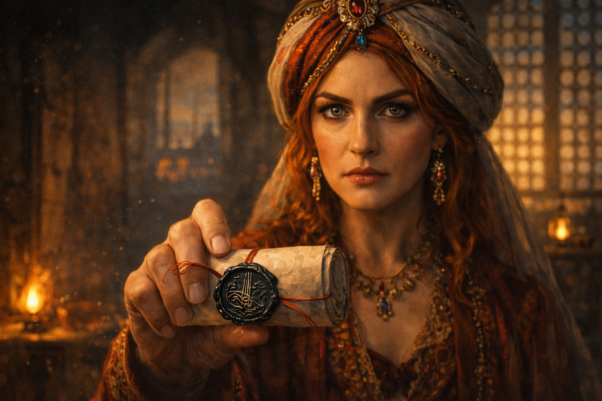 Хюррем сидела у окна. В пальцах держала янтарные чётки, но не перебирала — просто сжимала, как будто им нужна была сила, а не молитва.