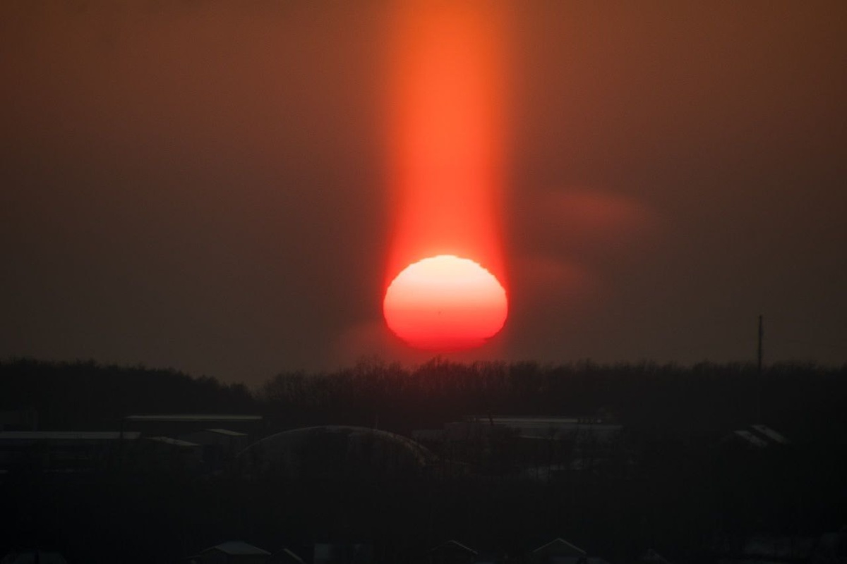 Подписчики «Городских известий» делятся фотографиями светового столба над Курском — редкого явления, возникающего при сильном морозе.